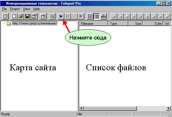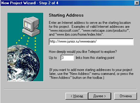 Вам надо бесплатно скачать Teleport Pro 1.72 и запустить. Откроется вкладка «Мастера новых проектов» через клик команды New Project Wizard.